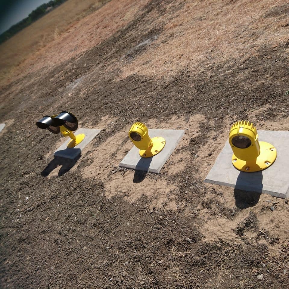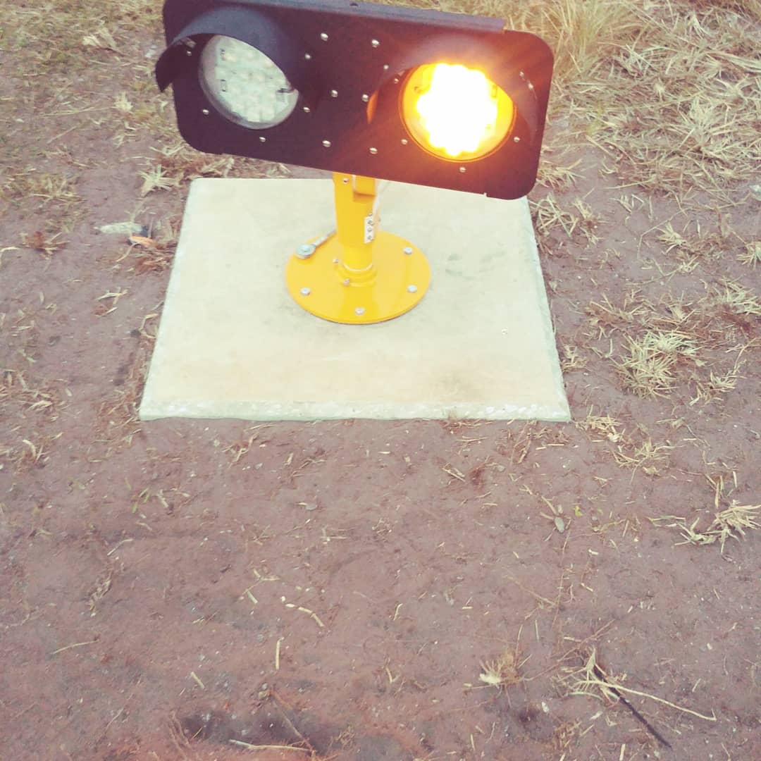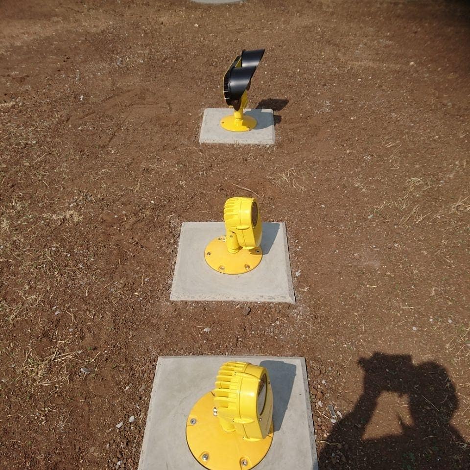 Final approach and take off Lights (FATO) – Touchdown and lift off lights (TLOF) – Approach Lights – Skid marker lights – CHAPIS (PAPI) – Flashing identification beacons – Windsocks – Surface flood lights – Taxiway lights – Control panels – Galvanised steel pots/light anchors